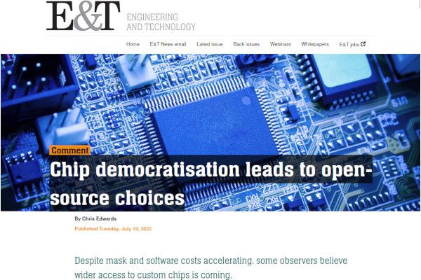 The full piece, which includes comment from Rapid Silicon's Tony McDowell, CHIPS Alliance's Rob Mains, Open Hardware Group's Rick O'Connor, and Silicon Initiative's Vic Kulkarni, is available on the E&T website now.